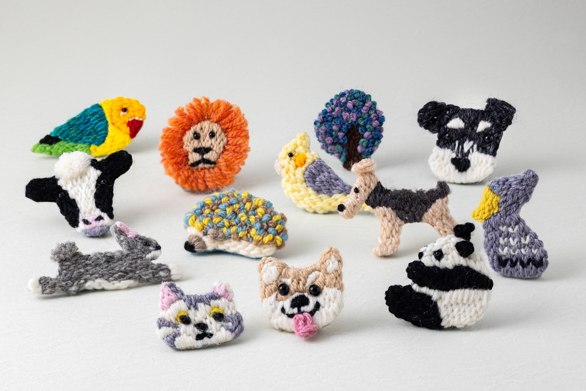 毛糸で刺繍された動物ブローチは、いぬや猫、小鳥、ハリネズミまで表情豊か。「今日も元気?」と語りかけてくるような可愛らしさに、思わず笑みがこぼれます。洋服にはもちろん、帽子やバッグにつけてお出かけください。