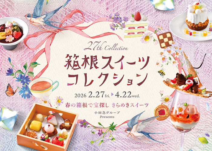 箱根スイーツコレクションは、春の箱根を彩る創作スイーツの祭典です。小田原、箱根湯本、強羅などのホテル・カフェ・飲食店約35店舗が参加し、それぞれのシェフ・パティシエが考案した春限定のオリジナルスイーツを提供します。