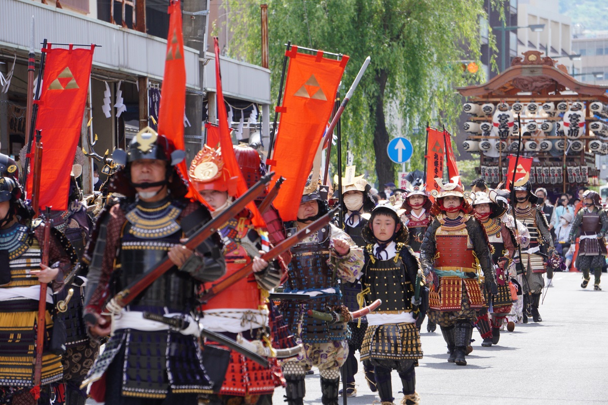 北条五大祭りは、戦国大名・北条氏を称える小田原市最大級のお祭りです。北条五代歴代城主を模した武者行列をはじめ、音楽隊や神輿などが市内を練り歩き、小田原のまちが華やかににぎわいます。毎年多くの来場者でにぎわう、小田原を代表する催しです。