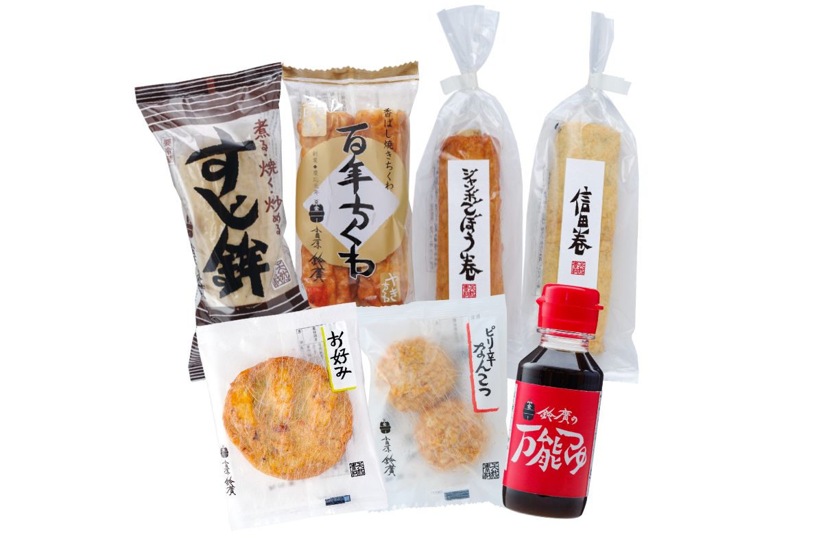 ◆内容:すじ鉾、百年ちくわ、ジャンボごぼう巻、信田巻、お好み、ピリ辛なんこつ、万能つゆ