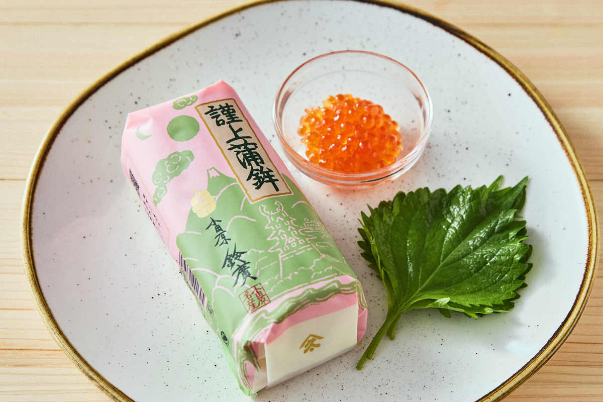 ぷりっとした弾力を楽しむ板わさには、「謹上蒲鉾」をおすすめしております。しなやかな弾力を生む旬のグチをメインに、季節に応じてタイ類やタラ類の魚をブレンド。化学調味料や香料などももちろん使わず、白身魚の本来の味わいをゆっくりお楽しみください。
