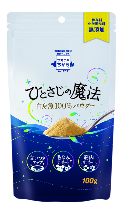 鈴廣かまぼこの「ひとさじの魔法」は、魚から作られた犬用のふりかけです。